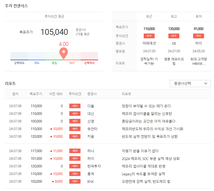 | SK하이닉스 주가 전망 및 목표 주가 분석 (0) | 2024.07.08 |
