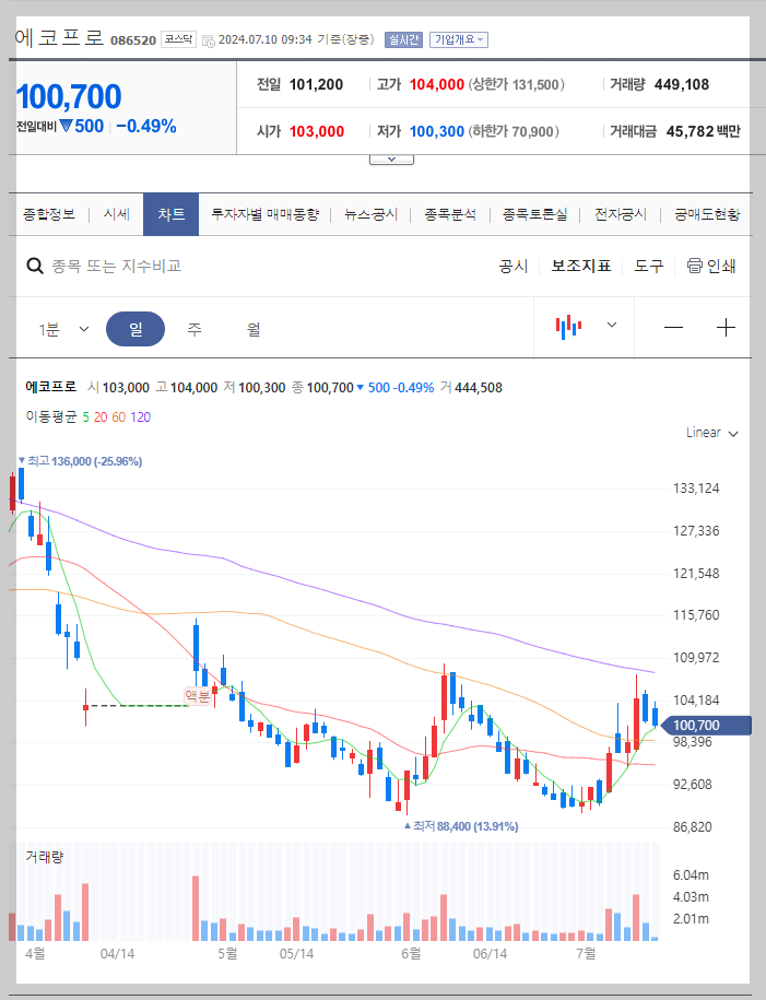 본 포스트는 에코프로의 주가 전망, 목표 주가, 그리고 기업 정보를 다룹니다. 주식 투자에서 핵심은 현재의 기업 가치가 아닌 미래 가치를 예측하고 선제적으로 대응하는 것입니다. 투자 결정을 내리기 전에는 해당 기업의 현재 상황과 지표들을 면밀히 검토하는 것이 중요합니다. 에코프로의 최신 주가 현황과 투자 정보를 살펴보고, 주식 투자를 고려 중이시라면 이 자료가 도움이 될 것입니다.
